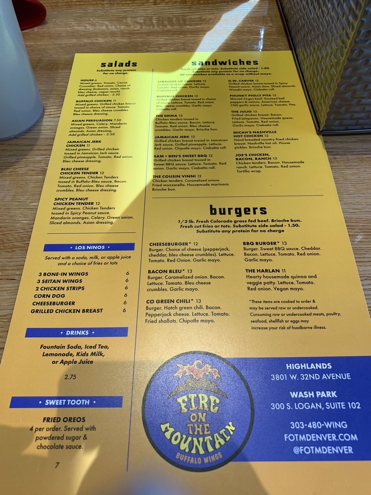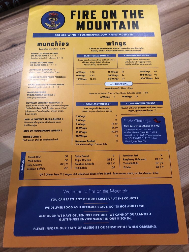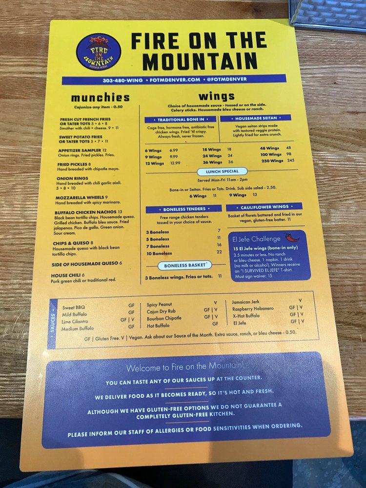 Fire On The Mountain is a trendy beer and cocktail bar in Denver, offering a diverse menu centered around chicken wings. With a variety of flavors, like dill pickle dry rub and Arianna picante Tapatio-based sauce, customers rave about the wings and unique dishes like sweet potato tots and smoke pork with green chili topping. The relaxed atmosphere and attentive staff add to its charm, making it a must-visit for wing lovers. Customers praise the quality and service, with standout dishes like fried cauliflower and a selection of craft beers. The spacious location with indoor, covered tent, and dog-friendly patio seating caters to various preferences, ensuring a pleasant dining experience. Overall, Fire On The Mountain impresses with its delicious wings, friendly staff, and inviting ambiance, making it a top choice for a memorable dining experience in Denver.